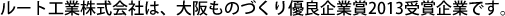 ルート工業株式会社は、大阪ものづくり優良企業賞2013受賞企業です。